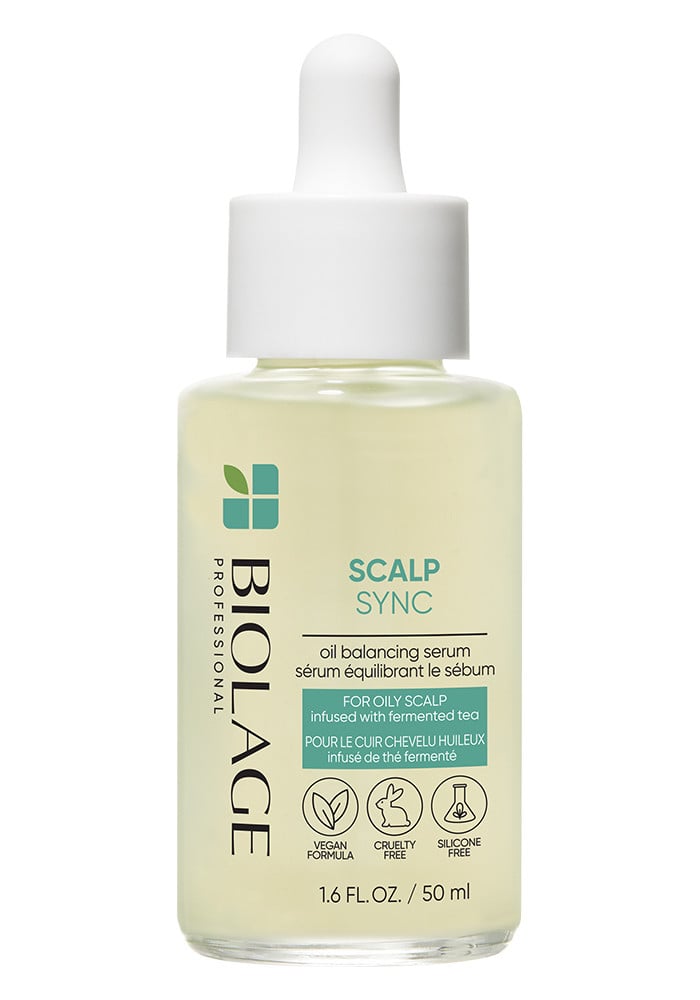 A lightweight, leave-in serum that rebalances an oily scalp.