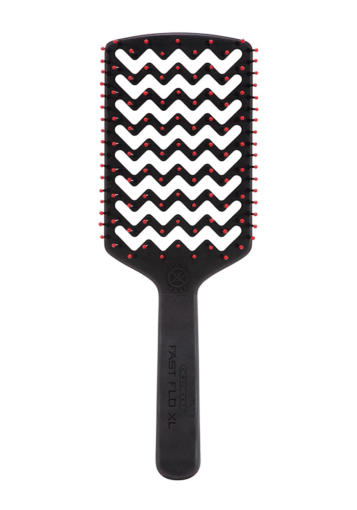 Extra-large vent pattern brush to speed up hair drying, while reducing static in hair.