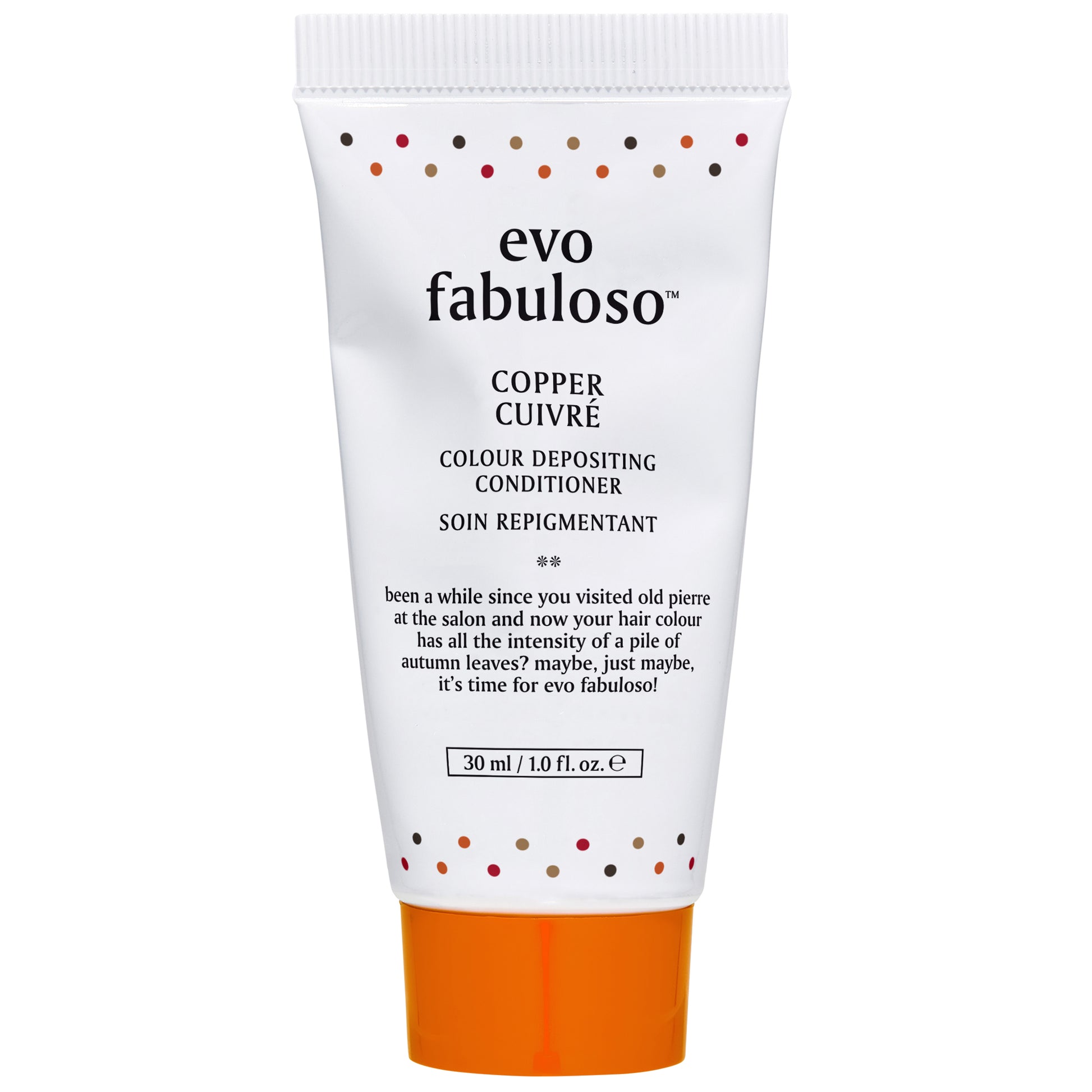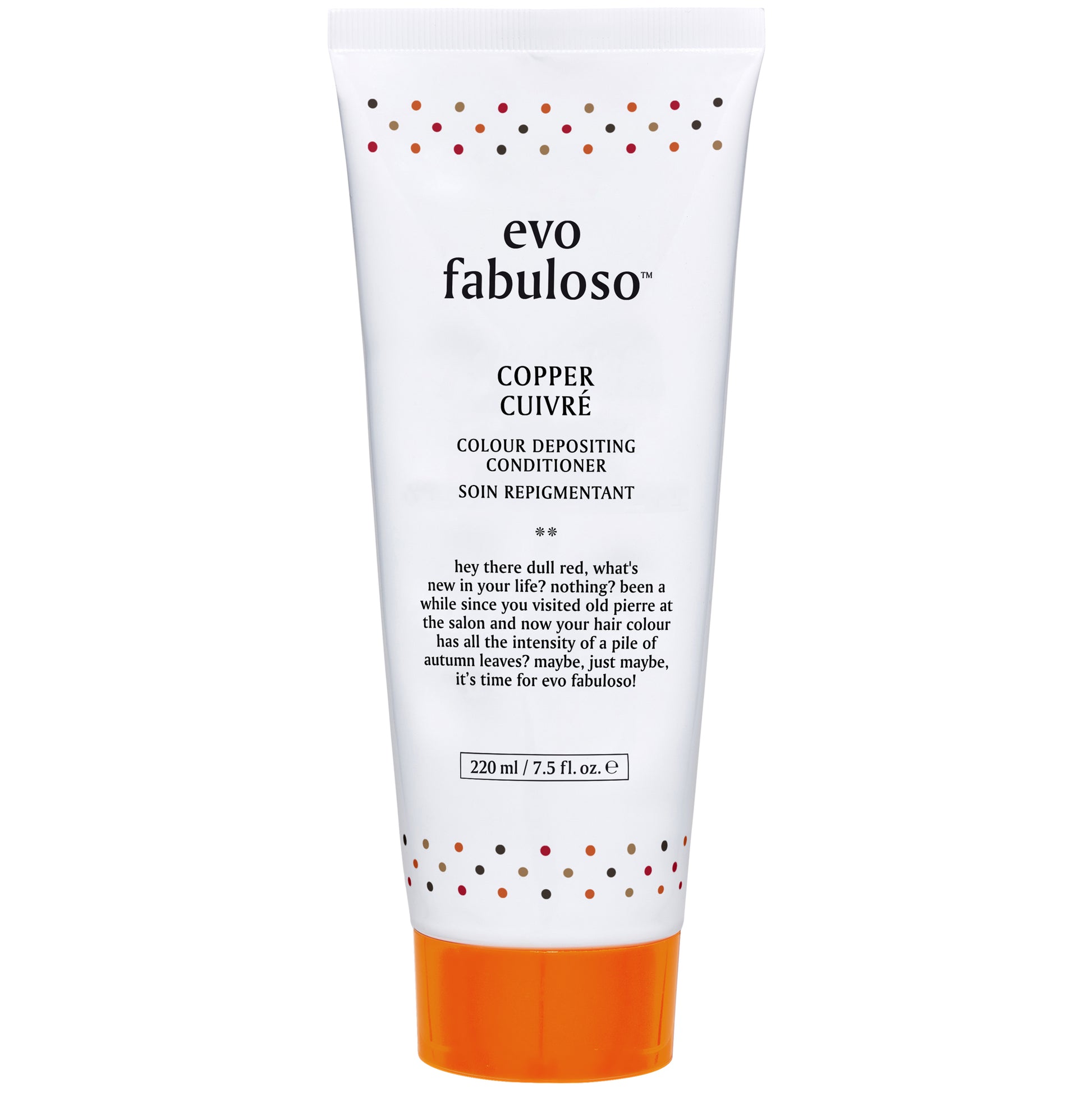 evo fabuloso colour depositing conditioners instantly refresh, tone, revive and add shine to color treated hair. this at-home, 3 minute conditioning treatment uses cationic hair dye to help boost color and keep hair vibrant for longer. this hair treatment features reparative and anti-static properties to help strengthen hair and reduce frizz. copper is best suited to dull, dry, color-treated blonde to medium brown hair with copper tone. take evo fabuloso straight from shelf to shower to keep color-treated hair toned, vibrant and healthy in-between salon visits.