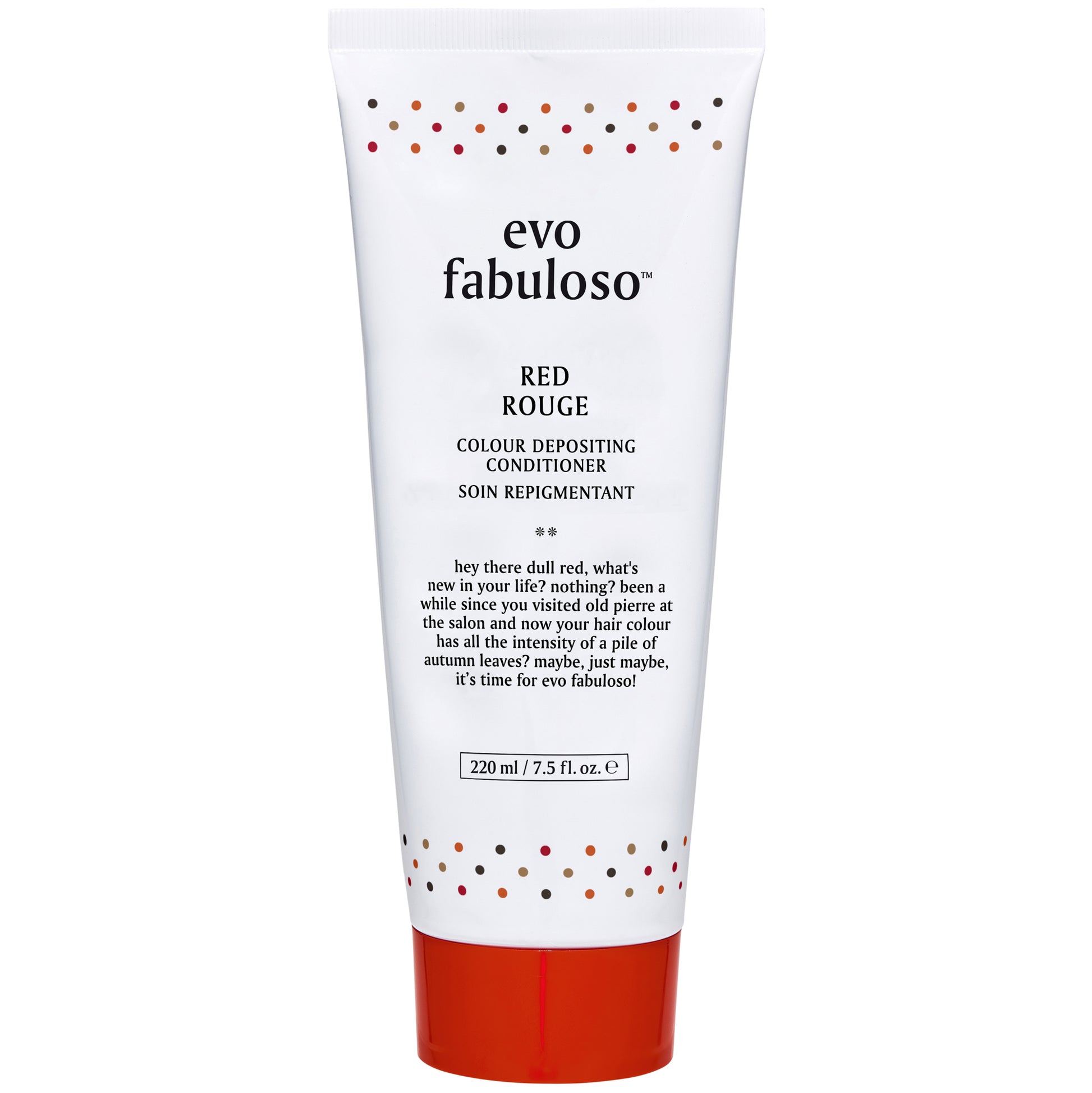 evo fabuloso colour depositing conditioners instantly refresh, tone, revive and add shine to color treated hair. this at-home, 3 minute conditioning treatment uses cationic hair dye to help boost color and keep hair vibrant for longer. this hair treatment features reparative and anti-static properties to help strengthen hair and reduce frizz. red is best suited to dull, dry, color-treated dark blonde to medium brown hair with a red tone. take evo fabuloso straight from shelf to shower to keep color-treated hair toned, vibrant and healthy in-between salon visits.