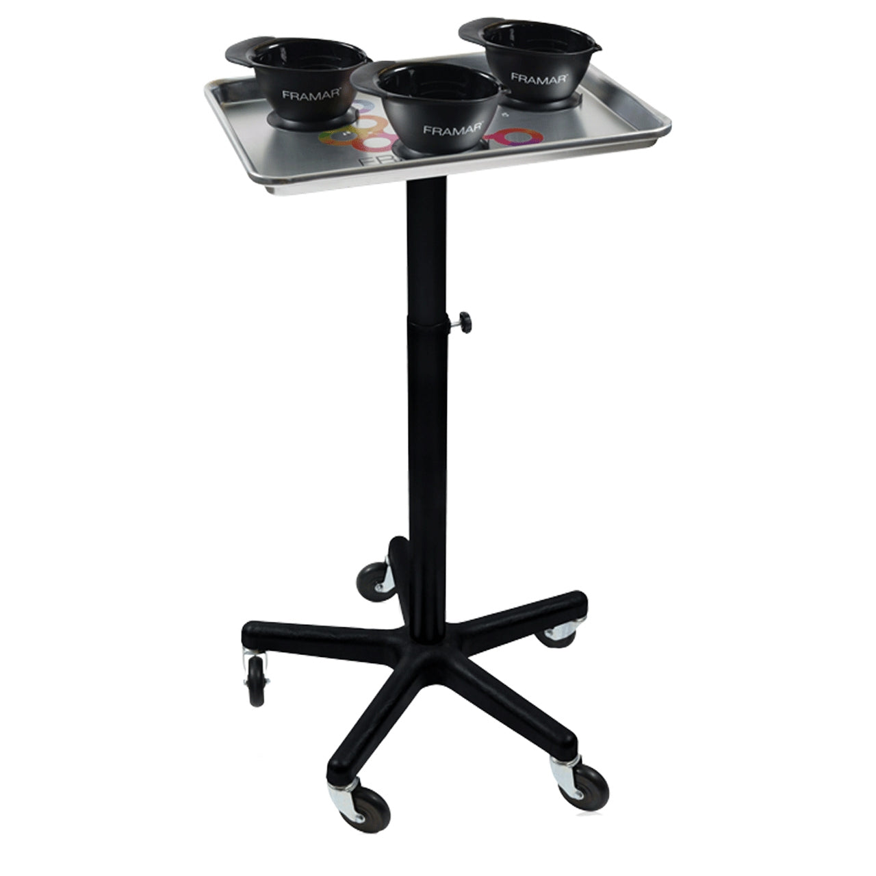 Framar Creation Station has an aluminum tray top, adjustable height 26" to 42" and wheel base.