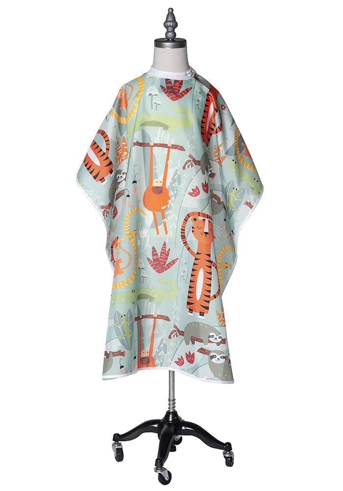 Water repellent, lightweight and breathable kids hairstyling cape.
