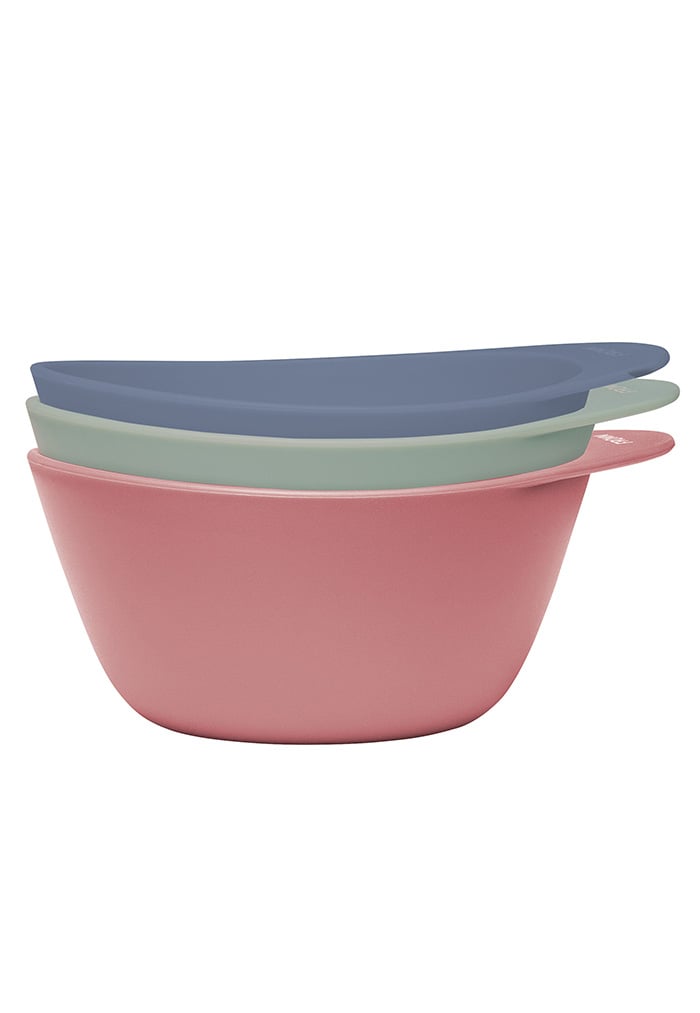 3 small mixing bowls with measuring scales inside for easy haircolor measurement.