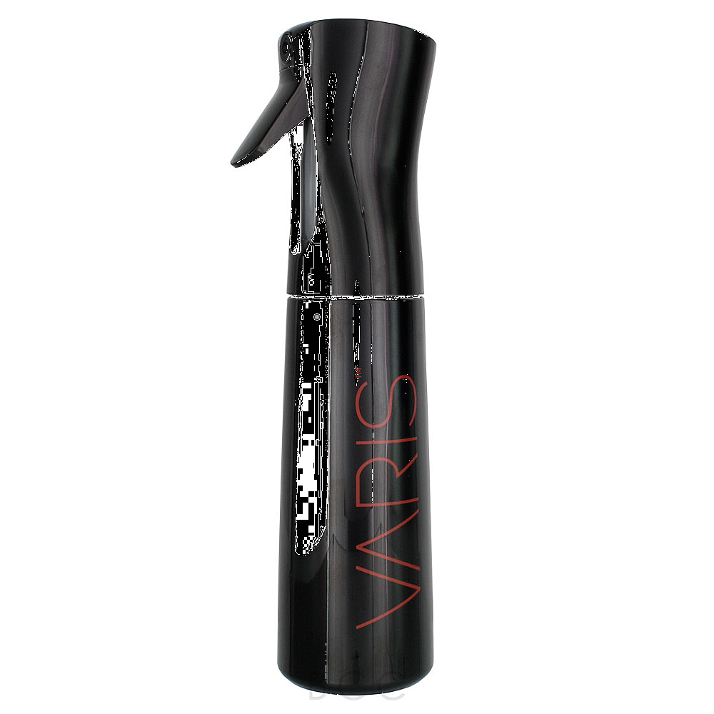 The VARIS Sprayer 10.1 oz refillable water bottle features a continuous spray that allows for large areas to be covered quickly and easily without having to continue engaging the spray trigger. The fine mist distributes water evenly to the hair