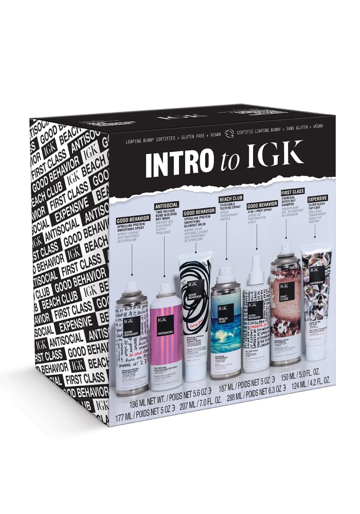 Elevate your styling game with the Intro to IGK Kit—a curated collection designed to support and enhance the creative process of every stylist. Each product has been carefully chosen to provide versatile styling solutions, whether you’re repairing damage, adding shine, smoothing frizz, or creating effortless texture.