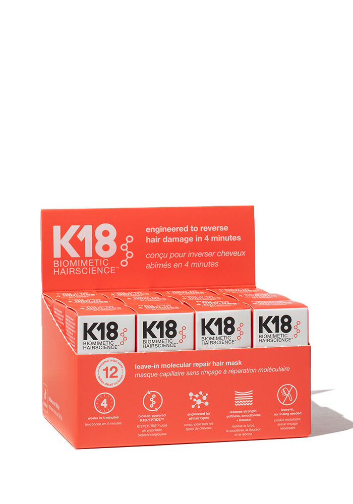 • Damage is ongoing - Send the K18 retail sizes home with your client to maintain hair integrity in between appointments + the K18 PRO service.