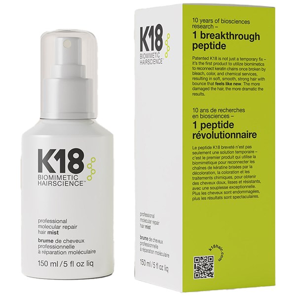 • The K18PEPTIDE™ works at the innermost layer of hair, reconnecting polypeptide chains and disulfide bonds broken during bleaching, chemical services, and through heat damage. By addressing these damage sites at the innermost layer of hair, core strength and elasticity are renewed for strong, smooth, bouncy hair—even after the most extreme damage done in the salon.