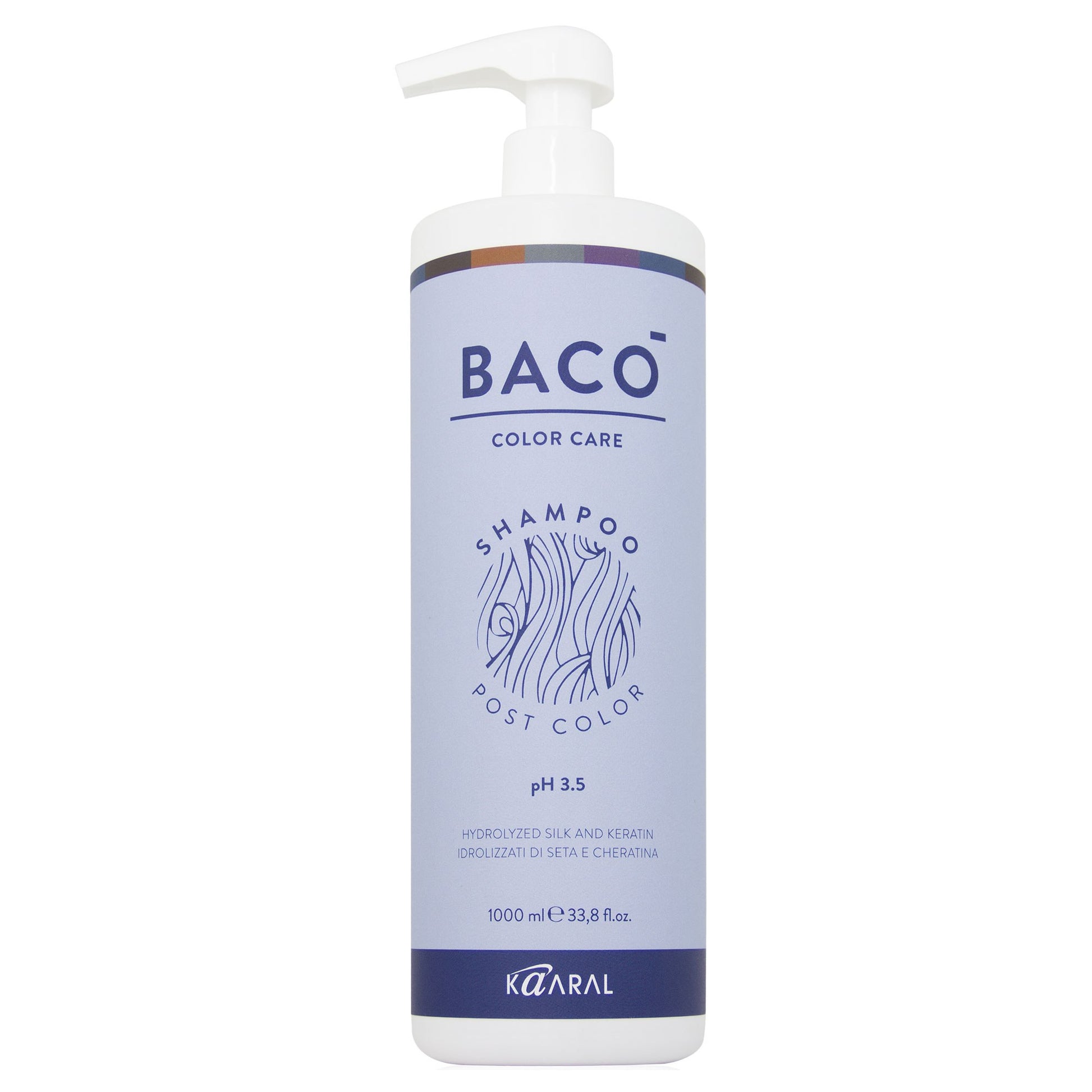Bacò Post Color is the hair care line specifically designed to treat the hair after the coloring service. Enriched with Hydrolyzed Silk and Rice Protein, favors a long-lasting color and seals the cuticles. For extremely soft, full-bodied, and revitalized hair. The acid pH formulation gently cleanses the hair removing coloring residues without attacking the cuticle. Liters/Backbar size.