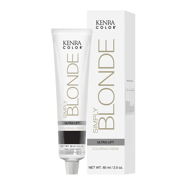 Kenra Color Simply Blonde Ultra Lift is a timesaving single step coloring creme delivering high lift up to 4 levels on natural hair. This creamy formula has a cool blue base to help neutralize unwanted warm undertones leaving you with radiant results. Blonding you can trust.