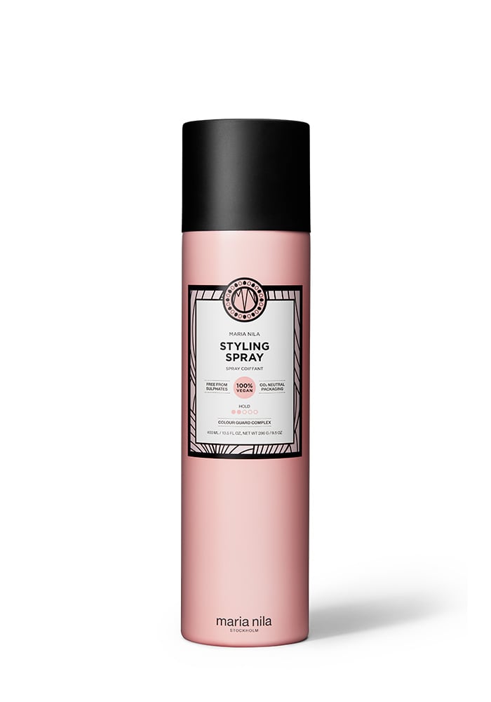 The Styling Spray has a vanilla-balsamic fragrance, with citrusy and floral notes of nectarine, pink rose and magnolia. Colour Guard Complex helps preserve the color by protecting your hair from UV radiation and free radicals. Compared to the Finishing Spray and Extreme Spray, our Styling Spray is the lightest hair spray from the Maria Nila styling series.