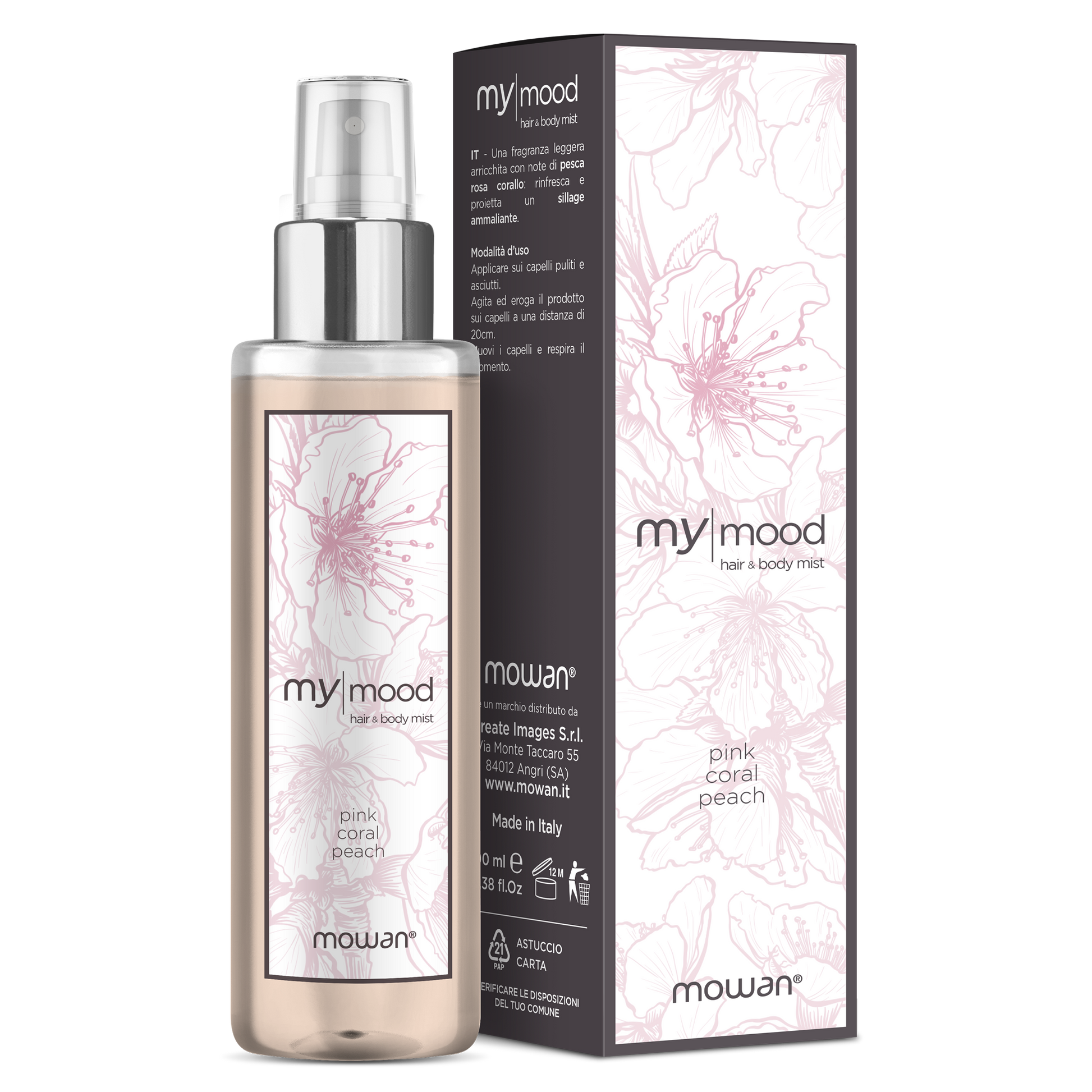 You know that fresh captivating scent that usually only accompanies freshly washed hair, well now it is yours whenever you want. my|mood is a light hair and body mist enhanced with pink coral peach that lingers in the air, and will entice those around you.