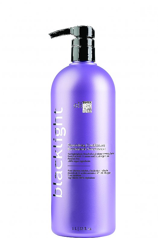 Blacklight's Nourishing Conditioner, formulated for highlighted, bleached, and colour treated hair, is enriched with 11 amino acids and argan oil. Its unique formula moisturizes, strengthens hair structure and repairs surface damage while increasing sh