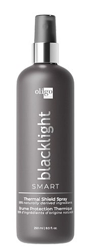 Blacklight Smart Shield Spray is a multifunctional alcohol-free system that offers heat protection up to 400°F (204°C) while also controlling high humidity and frizz. It is formulated with a natural sugar complex composed of a rare edible species of mu