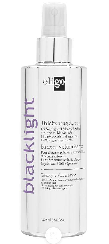 The Blacklight Thickening Spray increases fullness, adds instant lift, and creates volume with a smooth finish. • Offers 25% faster blow dry time • Shine and smoothness • Colour protection • Heat protection