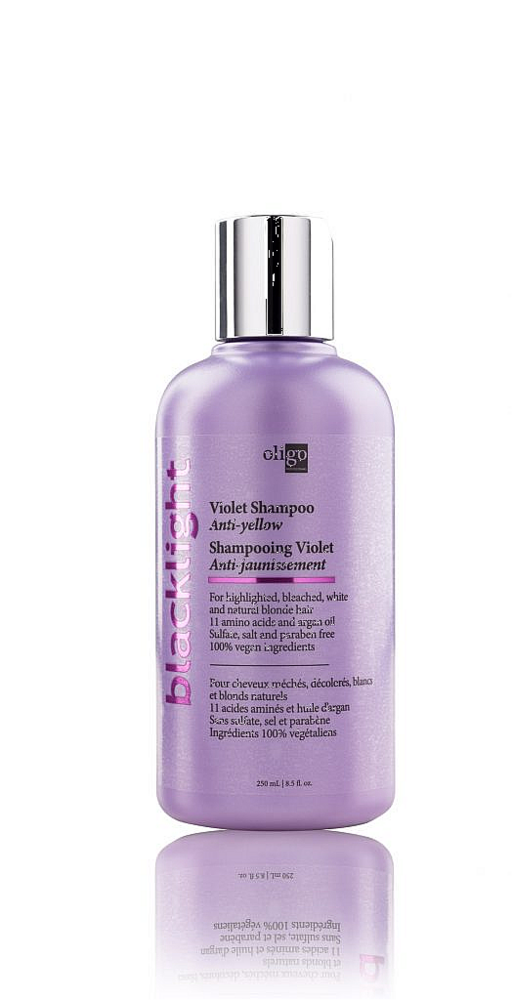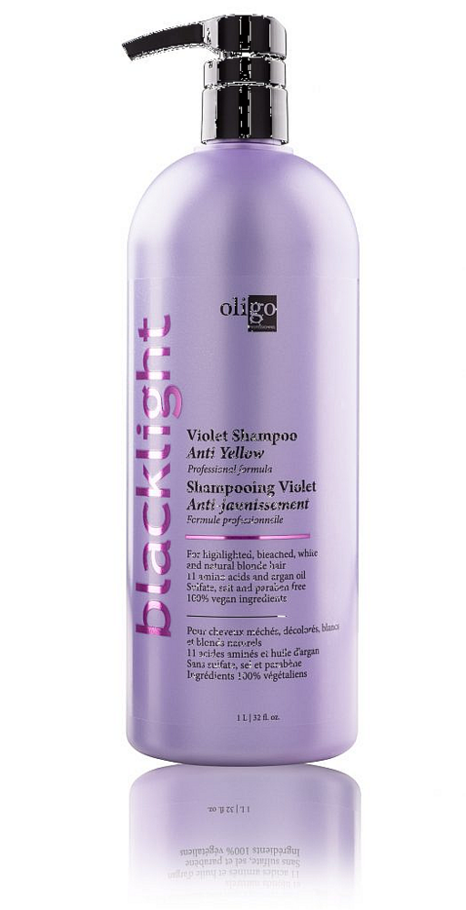 Blacklight's Violet Shampoo, formulated for highlighted, bleached, white and natural blonde hair, eliminates yellow tones, brassiness and refreshes faded highlights leaving hair looking cleaner and brighter. Its unique formula, enriched with 11 amino a