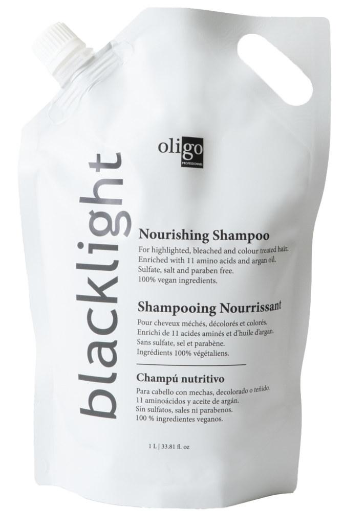 Blacklight's Nourishing Shampoo, formulated for highlighted, bleached and colour treated hair, is enriched with 11 amino acids and argan oil. Its unique formula moisturizes, strengthens hair structure and repairs surface damage while increasing shine and
