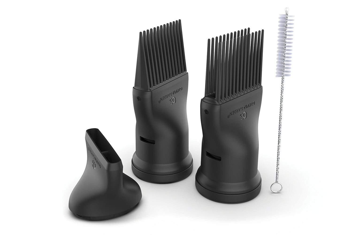 Attachment accessories for SuperHP Dryer. 4pc set includes: Concentrator nozzle 2 3/4", Fine-tooth comb attachment, Wide-tooth comb attachment and accessory cleaning brush. Daily cleaning is advised for professional use dryers.