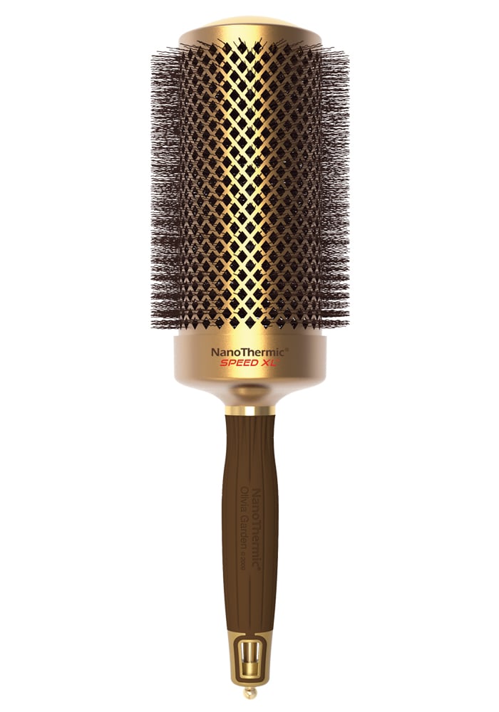 The brush's unique handle design features a snag-free ring and an easy-grip ergonomic handle, making it lightweight for effortless styling. Additionally, the handle design includes a retractable sectioning pick, making it an all-in-one tool for achieving the perfect blowout. The extra-long barrel of the NanoThermic Speed XL Brush collection enables the styling of larger sections of hair, making it possible to achieve the ultimate blowout. With the ability to dry hair 25% faster, this brush collection is a must-have for sylist looking to achieve a superior and long-lasting hairstyles.