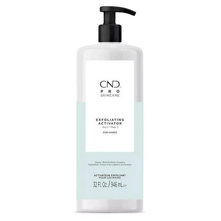 Step 2 of a reinvigorating prebiotic complex-enriched waterless hand exfoliation system that activates and dissolves exfoliating crystals for radiant, healthier-looking skin. Use after CND™ Pro Skincare Exfoliating Hand Scrub Step 1. Formulated with soothing natural origin aloe leaf. Refreshingly light cucumber scent.