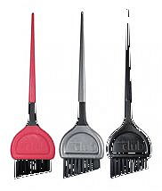 Angled bristles allow for precise placement of highlights. Great for balayage techniques. 3 pack contains one of each color: red, silver, and black.