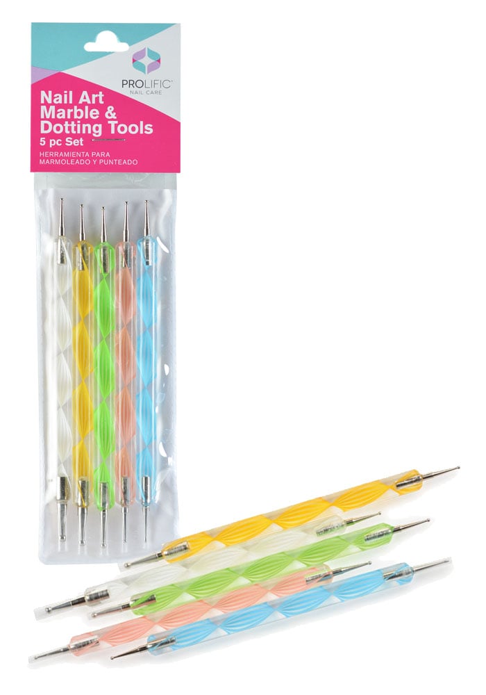 This easy to use 5 piece Marble & Dotting tool set will create hundreds of nail art designs.