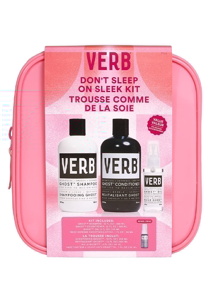 This 4-piece kit is all you need for the smooth, silky hair of your dreams, featuring Ghost™ Shampoo, Ghost™ Conditioner, Ghost™ Oil and a bonus deluxe sample of our 5-in-1 Frizz Defense Smoothing Spray.