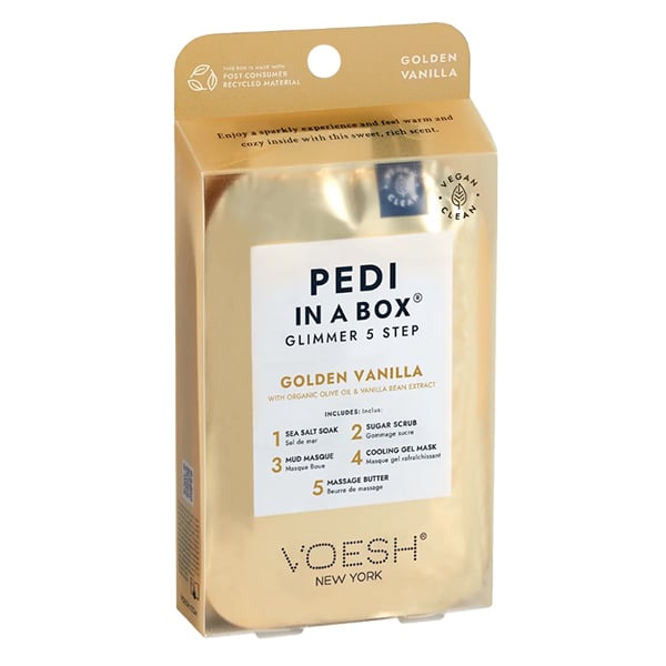 - Product is infused with golden flecks or glitter flecks for a fun twist on pedicures